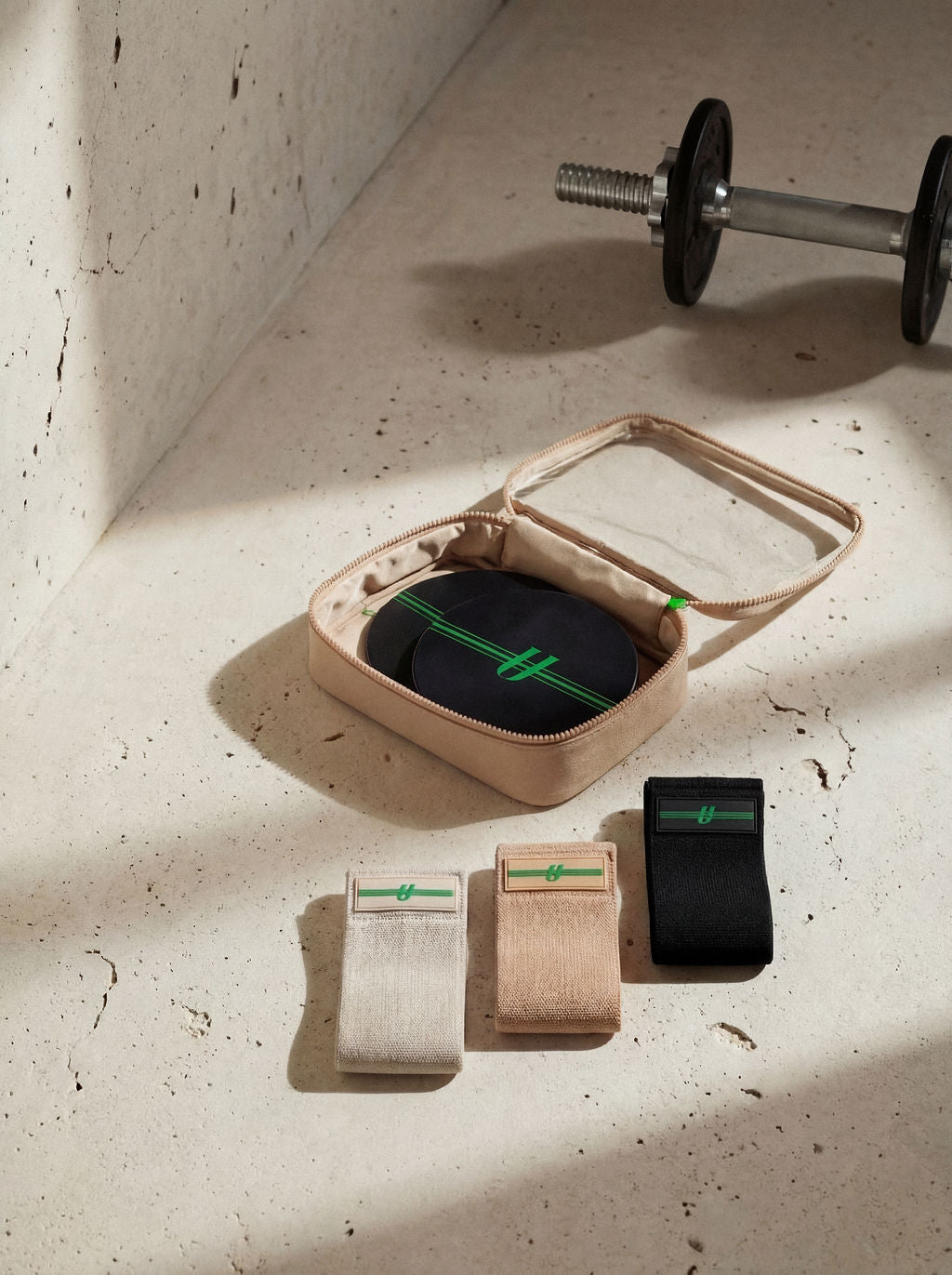 Inside, you’ll find three of our favorite tools to sculpt, strengthen, and support your training. And with extra room in the sleek travel bag, there’s space to customize your kit with your own gear—ankle weights, cheeky bands, workout gloves, you name it.